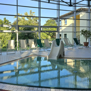 Sie können sich auch sportlich zeigen, ein paar Bahnen schwimmen und danach die Muskulatur in unserem Massage- und Entspannungsbecken auflockern.